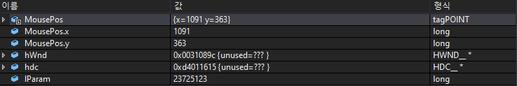 LOWORD(lParam)에 의해 마우스 X좌표 값, HIWORD(lParam)에 의해 마우스 Y좌표 값을 반환한다!