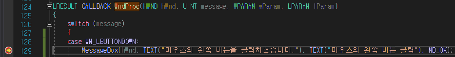 case 에 WM_LBUTTONDOWN, WM_MOUSEMOVE, WM_LBUTTONUP 조건을 추가해주었다.